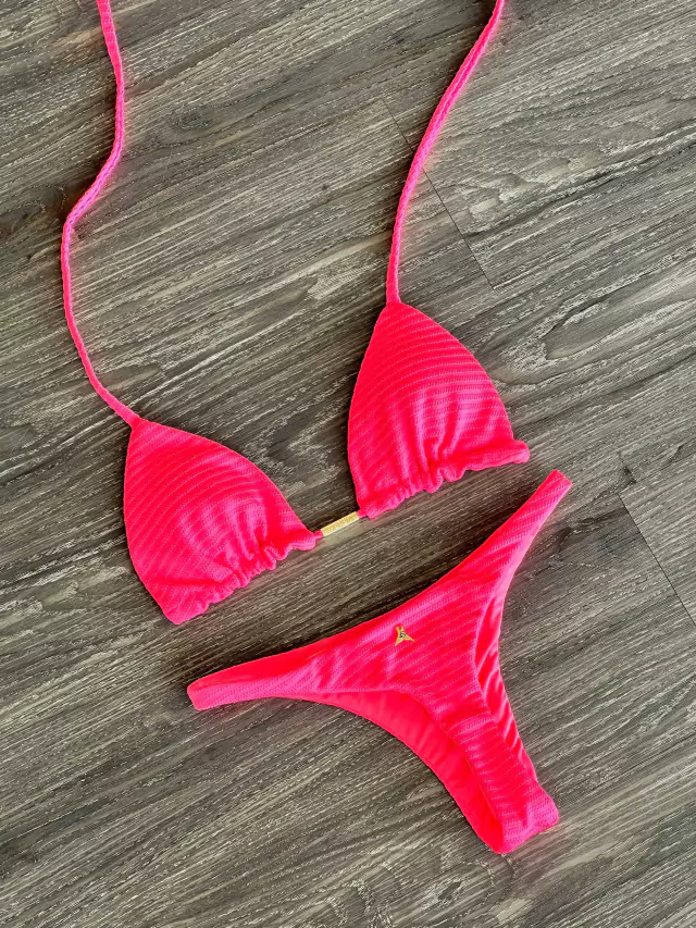 – Os tecidos e suas combinações são testados antes da confecção. A loja não se responsabiliza por possíveis danos causados nas peças após a entrega. Por isso é sempre importante ficar atento ao modo de lavagem, à exposição do tecido a agentes químicos de piscinas e à forma como as peças são guardadas. Evite contato com outras peças, pois elas podem soltar pigmentos que mancham o biquíni.
