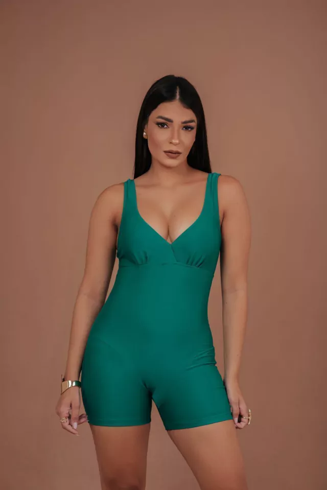 Maiô de hidroginástica verde, sem bojo, decote em V, a modelagem valoriza a silhueta feminina e traz conforto,alças largas que auxiliam na sustentação, costas inteiras, uma excelente opção para prática de hidroginástica. Lycra UV 50+ trilobal, com leve brilho.